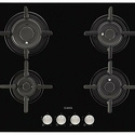 Поверхность: варочная панель • Тип поверхности: газовая • Рабочая поверхность: закаленное стекло • Число конфорок: 4 • Установка: независимая • Газовые конфорки: всего - 4 • Газ-контроль конфорок: есть • Тип управления: механическое • Переключатели: поворотные • Электроподжиг: есть, автоматический • Размеры: 590x520 мм • Размер ниши для встраивания: 560x490 мм • Цвет: панель - черный