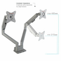 для мониторов • 17-34" • 2 монитора • к столешнице • поворотный • с регулировкой высоты • кабель-канал • струбцинное крепление • наклон 45° • поворот 360° • регулировка высоты 215-495 мм • цвет серебристый