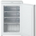 Тип: однокамерный морозильник-шкаф • Расположение: отдельностоящий • Количество компрессоров: 1 • Цвет: белый • Размеры (ШxВxГ): 550x850x580 мм • Количество дверей: однодверный • Объем морозильной камеры: 85 л • Разморозка: ручная • Минимальная температура: -18 °C (***) • Управление: электромеханическое • Морозильная камера: ящик x 4 • Класс энергопотребления: A+ • Годовой расход энергии: 177 кВтч