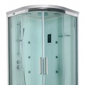 закрытая кабина • угловая • двери раздвижные • гидромассаж • баня • тропический душ • электронное управление • вентилятор • 100x100x220 см