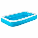 Артикул № 734820 Прямоугольный семейный надувной бассейн для взрослых детей от 3 лет. Изготовлен из высококачественного винила, устойчивый, надежный и безопасный. Имеет мягкие стенки с широкими бортиками и жесткое дно из ПВХ-пленки. Бассейн легко надувается и устанавливается на любой ровной поверхности. Для слива воды после использования бассейна предусмотрен специальный сливной клапан. Клапан можно подключить к садовому шлангу.