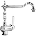 Назначение: кухонный • Конструкция: однорычажный • Монтаж: горизонтальный • Клапан: керамический • Материал: покрытие - хром • Монтажные отверстия: 1 отверстие диаметром 35 мм • Форма излива: традиционная • Душевая лейка в комплекте: нет • Донный клапан в комплекте: есть