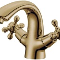 Назначение: для умывальника • Конструкция: двухрычажный • Монтаж: горизонтальный • Материал: латунь, покрытие - бронза • Монтажные отверстия: 1 отверстие • Форма излива: традиционная • Душевая лейка в комплекте: нет • Донный клапан в комплекте: есть