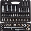 Набор: 94 шт • Ключи: шестигранные • Головки: 6-ти гранные головки, свечные • Ключей-трещоток: 2 шт • Хранение: пластиковый кейс