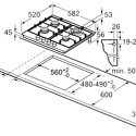 Поверхность: варочная панель • Тип поверхности: газовая • Рабочая поверхность: нерж.сталь • Число конфорок: 4 • Установка: независимая • Газовые конфорки: всего - 4 (1 конфорка "Двойная корона") • Газ-контроль конфорок: есть • Тип управления: механическое • Переключатели: поворотные • Электроподжиг: есть, автоматический • Размеры: 582x520x45 мм • Размер ниши для встраивания: 560x490 мм • Цвет: панель - нерж.сталь