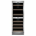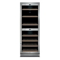 Тип: двухкамерный винный шкаф • Расположение: отдельностоящий • Количество компрессоров: 1 • Цвет: нерж.сталь • Размеры (ШxВxГ): 595x1630x735 мм • Количество дверей: однодверный • Винный шкаф: 126 бут. • Управление: цифровой дисплей, электронное • Освещение в холодильной камере: есть • Холодильная камера: полка для бутылок x 5 • Материал полок: дерево