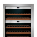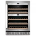 Тип: двухкамерный винный шкаф • Расположение: отдельностоящий • Количество компрессоров: 1 • Цвет: нерж.сталь • Размеры (ШxВxГ): 595x825x625 мм • Количество дверей: однодверный • Винный шкаф: 40 бут. • Управление: цифровой дисплей, электронное • Освещение в холодильной камере: есть • Холодильная камера: полка для бутылок x 5 • Материал полок: дерево
