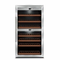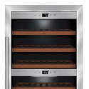 Тип: двухкамерный винный шкаф • Расположение: отдельностоящий • Количество компрессоров: 1 • Цвет: нерж.сталь • Размеры (ШxВxГ): 595x1035x675 мм • Количество дверей: однодверный • Винный шкаф: 66 бут. • Управление: цифровой дисплей, электронное • Освещение в холодильной камере: есть • Материал полок: дерево