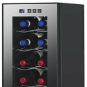 Тип: однокамерный винный шкаф • Расположение: отдельностоящий • Количество компрессоров: 1 • Цвет: чёрный • Размеры (ШxВxГ): 255x622x510 мм • Количество дверей: однодверный • Общий объем: 33 л • Винный шкаф: 12 бут. • Управление: электронное • Освещение в холодильной камере: есть • Материал полок: металл-хром • Годовой расход энергии: 365 кВтч