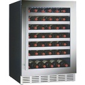 Тип: однокамерный винный шкаф • Расположение: отдельностоящий • Количество компрессоров: 1 • Цвет: серебристый • Размеры (ШxВxГ): 605x870x600 мм • Количество дверей: однодверный • Общий объем: 149 л • Винный шкаф: 54 бут. • Управление: цифровой дисплей, электронное • Освещение в холодильной камере: есть • Материал полок: дерево • Годовой расход энергии: 365 кВтч