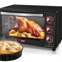 Тип: электрическая • Установка: независимая • Объем: 50 л • Цвет: черный • Дверца: откидная • Максимальная температура: 320 °С • Очистка духовки: традиционная • Количество режимов работы духовки: 4 • Переключатели: поворотные • Таймер: есть, звуковой, до 90 мин • Потребляемая мощность: 2000 Вт • Комплектация: 1 противень, 1 решетка, ухват для противня