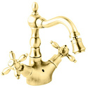 Назначение: для биде • Конструкция: двухрычажный • Монтаж: горизонтальный • Материал: латунь, покрытие - золото • Монтажные отверстия: 1 отверстие • Форма излива: традиционная • Душевая лейка в комплекте: нет • Донный клапан в комплекте: есть