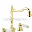 Назначение: для умывальника • Конструкция: однорычажный • Монтаж: вертикальный • Клапан: керамический • Материал: латунь, покрытие - золото • Подводка: жесткая • Монтажные отверстия: 2 отверстия • Форма излива: традиционная • Душевая лейка в комплекте: нет • Аэратор: есть