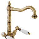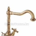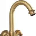 Назначение: для умывальника • Конструкция: двухрычажный • Монтаж: горизонтальный • Материал: латунь, покрытие - бронза • Подводка: гибкая • Монтажные отверстия: 1 отверстие • Форма излива: традиционная • Душевая лейка в комплекте: нет • Аэратор: есть • Донный клапан в комплекте: есть