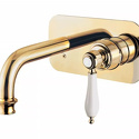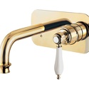 Назначение: для умывальника • Конструкция: однорычажный • Монтаж: вертикальный • Клапан: керамический • Материал: латунь, покрытие - золото • Подводка: жесткая • Монтажные отверстия: 2 отверстия • Форма излива: традиционная • Душевая лейка в комплекте: нет • Аэратор: есть • Донный клапан в комплекте: есть