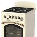 Тип конфорок: газовые • Рабочая поверхность: эмаль • Тип духовки: газовая • Размеры (ШxВxГ): 500x850x500 мм • Цвет: бежевый • Газовые конфорки: всего - 4 • Очистка духовки: традиционная • Подсветка: есть • Количество стекол дверцы духовки: 2 • Тип управления: механическое • Переключатели: поворотные • Часы: есть • Таймер: звуковой • Электроподжиг: есть, автоматический • Ящик для посуды: есть