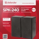 Производитель: Defender Модель: SPK 240 - звуковая схема: 2.0 - суммарная мощность (rms): 6 вт - материал корпуса колонок: дерево - частотный диапазон: 100 гц - 18 кгц - линейный вход: стерео (mini-jack 3.5мм) Описание