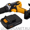 Тип: дрель-шуруповерт, пистолетная • Обороты: 1350 об/мин, скоростей 2 • Патрон: быстрозажимной, Ø 10 мм • Функции: реверс, подсветка, тормоз двигателя • Питание: аккумулятор, 20 В, Li-Ion