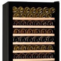 Тип: однокамерный винный шкаф • Расположение: отдельностоящий • Количество компрессоров: 1 • Цвет: чёрный • Размеры (ШxВxГ): 595x1770x680 мм • Количество дверей: однодверный • Общий объем: 428 л • Винный шкаф: 166 бут. • Разморозка: автоматическая • Управление: электронное • Освещение в холодильной камере: есть • Перевешиваемые двери: есть • Материал полок: дерево • Класс энергопотребления: D