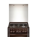 газовая панель + газовый духовой шкаф • поверхность: эмалированная сталь • крышка из закалённого стекла • управление механическое • таймер механический • размеры (ШхГхВ): 60x60x85 см • цвет коричневый