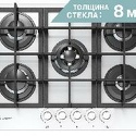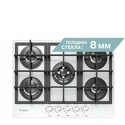 газовая на 5 конфорок • закаленное стекло • мощность: 10800 Вт • автоматический электроподжиг • газ-контроль • решетки: чугун • независимая установка • размеры (ШхГ): 70x52.5 см