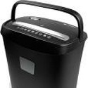 Для дома/офиса • уровень секретности 3 • разовая загрузка 10 листов • уничтожает скобы • скрепки • пластиковые карты • емкость корзины 15 л • 322x171x326 мм • вес 3.2 кг