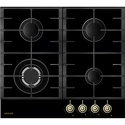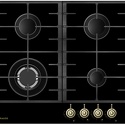 Поверхность: варочная панель • Тип поверхности: газовая • Рабочая поверхность: закаленное стекло • Число конфорок: 4 • Установка: независимая • Газовые конфорки: всего - 4 (1 конфорка "Тройная корона") • Газ-контроль конфорок: есть • Тип управления: механическое • Переключатели: поворотные • Электроподжиг: есть, автоматический • Размеры: 590x510 мм • Размер ниши для встраивания: 560x490 мм • Цвет: панель - черный
