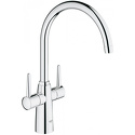 Коллекция - Ambi, Назначение - Для мойки, Тип - Двухзахватный, Ширина - 15.7, Поворотный излив - Да, Покрытие - Хром, Тип подводки - Гибкая, Присоединительный размер - 3\8", Количество монтажных отверстий - 1, Система быстрого монтажа - Да, Материал корпуса - Латунь, Цвет - Нержавеющая сталь, Форма излива - Традиционная, Встраиваемый - Нет, Аэратор - Есть, Высота - 37.7, Длина излива - 223, Термостат - Нет, Донный клапан - Нет, Глубина - 22.3, Высота излива - 252