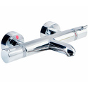 Назначение: ванна+душ • Конструкция: с раздельными клапанами • Монтаж: вертикальный • Материал: покрытие - хром • Монтажные отверстия: 2 отверстия • Форма излива: традиционная • Термостат: есть • Душевая лейка в комплекте: нет • Эксцентрики в комплекте: есть