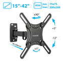 для ЖК-телевизоров • 15-42" • настенный • поворотный • кабель-канал • наклон 12° • поворот 90° • цвет черный