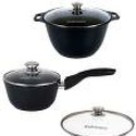 В наборе: кастрюли, ковш, сковородка, 3 шт • Размер: от 18 см, до 24 см • Объем: от 1.5 л, до 4 л • Материал: алюминий