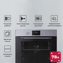 электрический с конвекцией • объем 78 л • утапливаемые переключатели • 7 режимов • очистка ручная • 2 стекла в дверце • направляющие проволочные