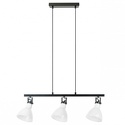 Подвесной светильник стиля модерн для гостиной, кабинета, кухни, прихожей или спальни имеет размеры 750x145x1700 мм. Арматура светильника окрашена в черный цвет. Лампы в комплекте - отсутствуют. В светильнике применяются лампы накаливания или светодиодная LED-лампа. Цвет плафонов - белый, с матовой поверхностью. Материал плафонов - стекло. Класс электробезопасности - I, степень пылевлагозащиты (IP) - 20. Максимальная мощность лампы (Вт) - 40. Светильник размещается на потолоке.