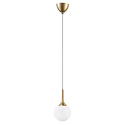 Подвесной светильник стиля модерн для гостиной, кабинета, кухни, прихожей или спальни имеет размеры 150x1370 мм. Арматура светильника окрашена в золотой цвет. Лампы в комплекте - отсутствуют. В светильнике применяются лампы накаливания или светодиодная LED-лампа. Цвет плафонов - белый, с матовой поверхностью. Материал плафонов - стекло. Класс электробезопасности - I, степень пылевлагозащиты (IP) - 20. Максимальная мощность лампы (Вт) - 40. Светильник размещается на потолоке.