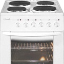 Тип конфорок: электрические • Рабочая поверхность: эмаль • Тип духовки: электрическая • Размеры (ШxВxГ): 500x850x600 мм • Цвет: белый, коричневый, синий, черный • Конфигурация электрических конфорок: 2 x 145 мм - 1000 g 2 x 180 мм - 1500 g • Электрические конфорки: всего - 4 • Объем духовки: 60 л • Гриль: есть, электрический • Подсветка: есть • Количество стекол дверцы духовки: 2