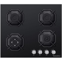 Поверхность: варочная панель • Тип поверхности: газовая • Рабочая поверхность: закаленное стекло • Число конфорок: 4 • Установка: независимая • Газовые конфорки: всего - 4 (1 конфорка "Тройная корона") • Газ-контроль конфорок: есть • Тип управления: механическое • Переключатели: поворотные • Электроподжиг: есть, автоматический • Размеры: 590x515x51 мм • Размер ниши для встраивания: 560x485 мм