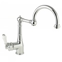 Назначение: кухонный • Конструкция: однорычажный • Монтаж: горизонтальный • Материал: латунь, покрытие - бронза • Подводка: гибкая • Монтажные отверстия: 1 отверстие • Форма излива: традиционная • Душевая лейка в комплекте: нет • Аэратор: есть • Донный клапан в комплекте: есть