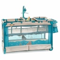 Дополнительнобоковой вход, колеса с фиксаторами, карман для игрушек, столик для принадлежностей, сумка для транспортировки, музыкальная шкатулка, вибрационный блок, ночник, ручки для малыша, дуга с игрушками