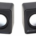Звуковая схема: 2.0 • Суммарная мощность (RMS): 6 Вт • Материал корпуса колонок: пластик • Частотный диапазон: 200 Гц - 20 КГц • Линейный вход: стерео (mini-jack 3.5мм) • Расположение элементов управления: задняя панель • Количество полос фронтальных колонок: 1 • Отношение сигнал/шум: 65 дБ • Питание: от порта USB • Размеры фронтальных колонок (ШxВxГ): 73x65x65 мм • Вес комплекта: 0.192 кг