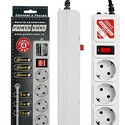 Розеток: евро 5 шт • Длина кабеля: 3 м • Мощность подключения: 2500 Вт, 10 А • Защита: короткое, импульсные