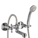 Назначение: ванна+душ • Конструкция: двухрычажный • Монтаж: вертикальный • Клапан: керамический • Материал: покрытие - хром • Подводка: жесткая • Монтажные отверстия: 2 отверстия • Форма излива: традиционная • Душевая лейка в комплекте: есть • Держатель для душевой лейки: на смесителе • Аэратор: есть • Эксцентрики в комплекте: есть • Донный клапан в комплекте: есть