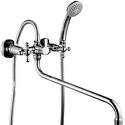 Термостат - Нет, Тип - Двухзахватный, Назначение - Универсальный, Присоединительный размер - 1\2", Форма излива - Традиционная, Количество монтажных отверстий - 2, Материал корпуса - Латунь, Длина излива - 417, Донный клапан - Нет, Поворотный излив - Да, Покрытие - Хром, Тип подводки - Жесткая, S-образные эксцентрики - Есть, Встраиваемый - Нет, Цвет - Серебристый, Аэратор - Есть, Комплектация - Держатель душевой лейки, душевой шланг, ручной душ
