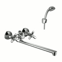 Длина излива - 320, Комплектация - Держатель душевой лейки, душевой шланг, ручной душ, Тип - Двухзахватный, Встраиваемый - Нет, Назначение - Для ванны и душа, Количество монтажных отверстий - 2, Материал корпуса - Латунь, Покрытие - Хром, Термостат - Нет, Аэратор - Есть, Присоединительный размер - 1\2", Высота - 10.4, Форма излива - Традиционная, S-образные эксцентрики - Есть, Тип подводки - Жесткая, Цвет - Серебристый, Ширина - 22.1, Поворотный излив - Да, Донный клапан - Нет, Глубина - 12.15