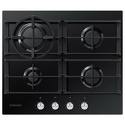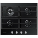 Поверхность: варочная панель • Тип поверхности: газовая • Рабочая поверхность: закаленное стекло • Число конфорок: 4 • Установка: независимая • Газовые конфорки: всего - 4 (1 конфорка "Тройная корона") • Газ-контроль конфорок: есть • Тип управления: механическое • Переключатели: поворотные • Электроподжиг: есть, автоматический • Размеры: 600x520x50 мм • Размер ниши для встраивания: 560x490 мм