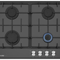 Поверхность: варочная панель • Тип поверхности: газовая • Рабочая поверхность: закаленное стекло • Число конфорок: 4 • Установка: независимая • Газовые конфорки: всего - 4 (1 конфорка "Двойная корона") • Тип управления: механическое • Переключатели: поворотные • Электроподжиг: есть, автоматический • Размеры: 590x520x109 мм • Размер ниши для встраивания: 560x490 мм • Цвет: панель - черный
