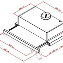 Установка: встраиваемая в шкаф, 60 см • Установка: встраиваемая • Режимы работы: отвод, циркуляция • Количество двигателей: 2 • Производительность: 460 м /ч • Регулировка мощности: есть, 3 скорости • Фильтр: жировой • Тип управления: механическое • Переключатели: кнопочные • Тип ламп: лампы накаливания • Мощность одной лампы: 28 Вт • Количество ламп: 2 • Диаметр отводного патрубка: 120 мм мм