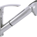 Назначение: кухонный • Конструкция: однорычажный • Монтаж: горизонтальный • Материал: покрытие - хром • Монтажные отверстия: 1 отверстие • Форма излива: традиционная • Душевая лейка в комплекте: есть • Аэратор: есть • Донный клапан в комплекте: есть