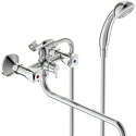 Комплектация - Смеситель, шланг, лейка,набор креплений, инструкция, паспорт, гарантийный талон, S-образные эксцентрики - Есть, Тип подводки - Жесткая, Количество монтажных отверстий - 2, Покрытие - Хром, Цвет - Серебристый, Материал корпуса - Латунь, Глубина - 39.5, Назначение - Для ванны и душа, Присоединительный размер - 1\2", Тип - Двухзахватный, Форма излива - Традиционная, Аэратор - Есть, Высота - 23.5, Ширина - 17.1, Система быстрого монтажа - Да, Поворотный излив - Да, Длина излива - 320, Высота излива - 156