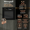 Производитель: Weissgauff Модель: EOV 291 PDB - тип: электрическая - установка: независимая - объем: 64 л - цвет: черный - дверца: откидная Описание
