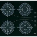 Поверхность: варочная панель • Тип поверхности: газовая • Рабочая поверхность: закаленное стекло • Число конфорок: 4 • Установка: независимая • Газовые конфорки: всего - 4 • Газ-контроль конфорок: есть • Тип управления: механическое • Переключатели: поворотные • Электроподжиг: есть, автоматический • Размеры: 580x510x30 мм • Размер ниши для встраивания: 550x470 мм • Цвет: панель - черный, рамка - черный